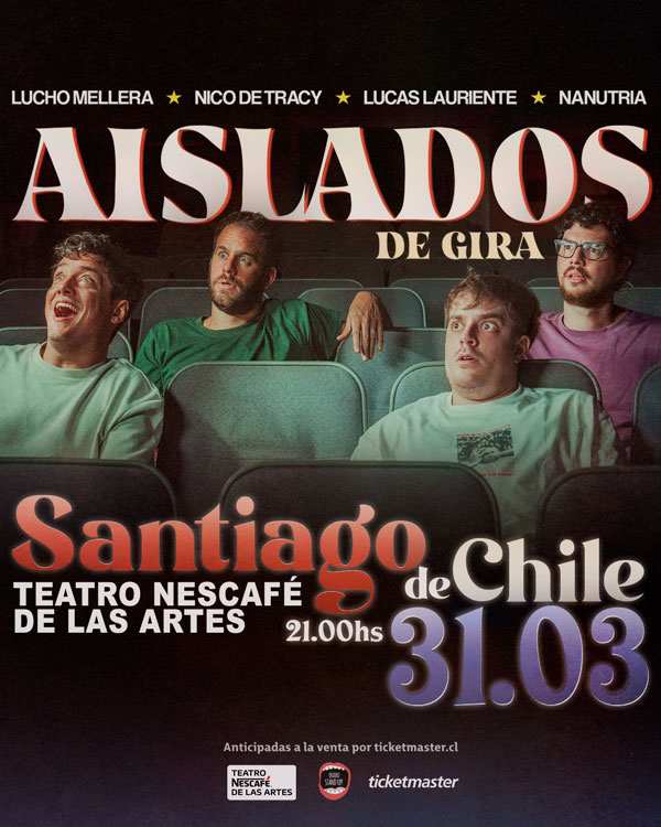 “Aislados el Podcast” es un proyecto que nació por Zoom en pandemia, cuando Nicolás de Tracy, Lucas Lauriente, Luciano Mellera, Nanutria (Víctor Medina) decidieron unir fuerzas para distraer y entretener a la audiencia durante el encierro, quienes llegarán el próximo 31 de marzo al TEATRO NESCAFÉ DE LAS ARTES.