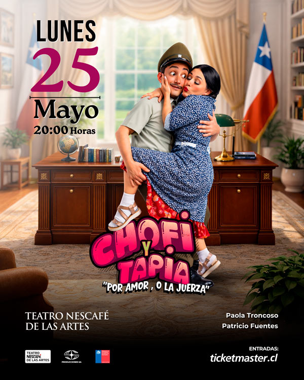Te invitamos a disfrutar de una entretenida y cercana obra teatral junto a los destacados actores Paola Troncoso y Patricio Fuentes, quienes darán vida a sus queridos personajes Chofi y Tapia en una presentación llena de humor, emoción y divertidas situaciones.