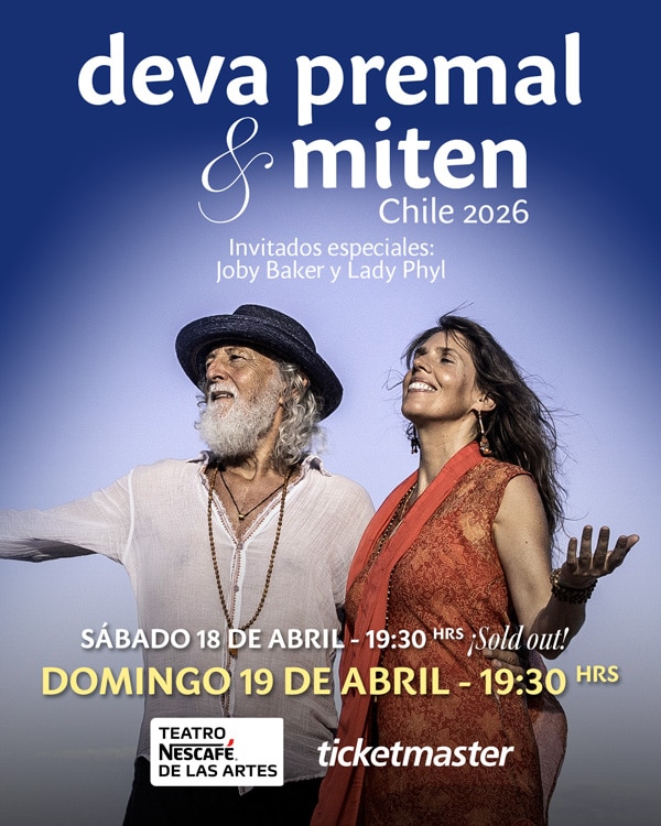 El 2026, Santiago será el escenario de una experiencia única de música, mantras y sanación. Nominados a los premios Grammy en la categoría de música New Age, Deva Premal y Miten regresan a Chile después de siete años; un evento esperado por los amantes de la música devocional. Conocidos por sus espectáculos multitudinarios y por generar espacios de sanación a través del canto, Deva y Miten presentarán un concierto profundamente transformador.