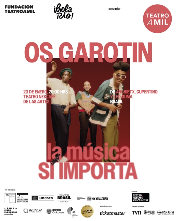 TEATRO NESCAFÉ DE LAS ARTES, en el contexto de la trigésima tercera versión del Festival Internacional Teatro a Mil, presentará a la banda brasileña Os Garotin con imperdible concierto el viernes 23 de enero.