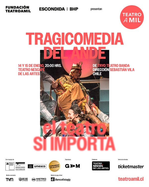 TEATRO NESCAFÉ DE LAS ARTES vuelve a programar en su escenario a la célebre compañía chilena Tryo Teatro Banda, ahora para conmemorar 25 años de trayectoria con el reestreno de la obra “Tragicomedia del Ande”, el miércoles 14 y jueves 15 de enero.