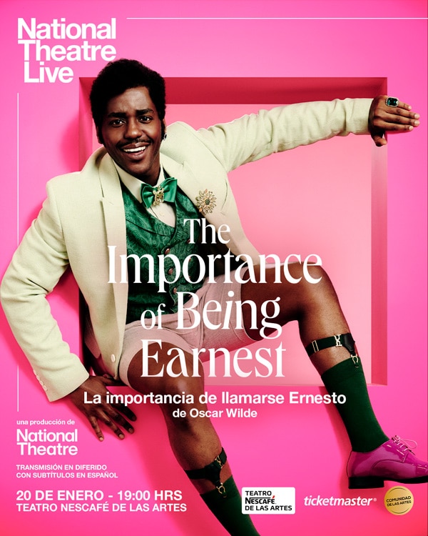 La revolucionara iniciativa artística creada por el Teatro Nacional de Londres (considerado la mejor plaza de su tipo a nivel mundial), que nuestro espacio programa desde 2014, sigue con sus transmisiones en 2026 para proyectar en diferecto, por pantalla gigante con subtítulos en español, esta aclamada versión de la más célebre comedia del escritor irlandés Oscar Wilde (estrenada originalmente en 1895).