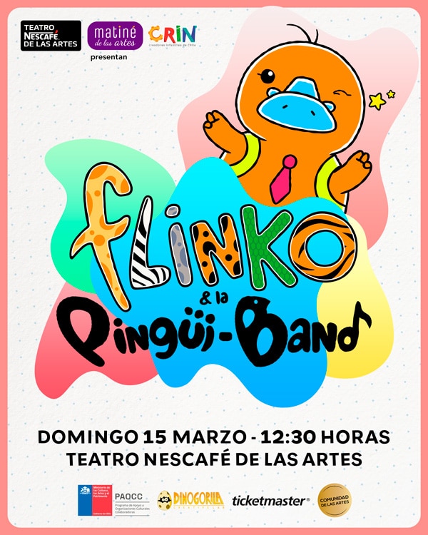 Tras programar los montajes infantiles “Los Patapelá & Babadú”, “Los Frutantes & El Arlequín y La banda de las Tortuguitas”, así como a “Guaypes Club & Wachún”, entre otras obras, y en tradicional acuerdo con la Asociación Gremial de Creadores Infantiles de Chile (CRIN Chile), por tercera vez tendrá en su escenario el show de “Flinko & la Pingüi-Band”, ahora el domingo 15 de marzo, a las 12.30 horas.