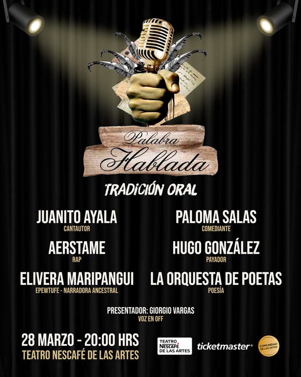 TEATRO NESCAFÉ DE LAS ARTES, en su constante interés por diversificar su programación, presentará una nueva versión del original e inédito encuentro de tradición oral, “Palabra hablada”, ahora el sábado 28 de marzo.