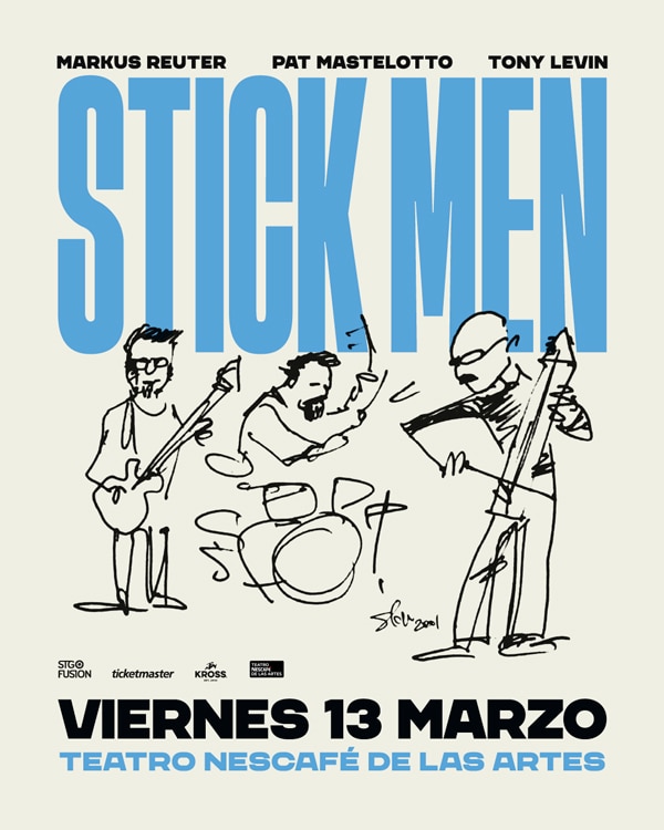 La icónica banda de rock progresivo Stick Men anunció una nueva visita a Santiago, una de las ciudades con más seguidores del género según Spotify. Este se concretará el próximo viernes 13 de marzo en el TEATRO NESCAFÉ DE LAS ARTES a las 20:30 horas.