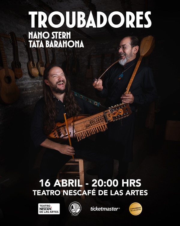 Tata Barahona y Nano Stern, dos de los más destacados exponentes de la escena musical chilena, se unen para presentar “Troubadores”, una gira acústica que recorrerá distintas ciudades del país que promete explorar sus universos creativos que conjugan modernidad y tradición, partiendo este 16 de abril en TEATRO NESCAFÉ DE LAS ARTES.