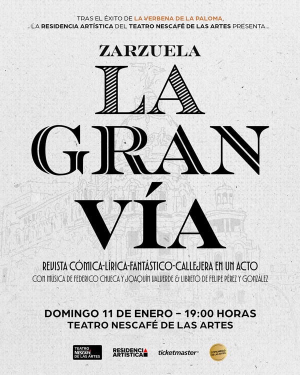 TEATRO NESCAFÉ DE LAS ARTES continúa en 2026, por cuarto año consecutivo, con la programación exclusiva de su residencia artística, ahora con el estreno de una gran producción del clásico de la zarzuela, “La gran vía”, el domingo 11 de enero.
